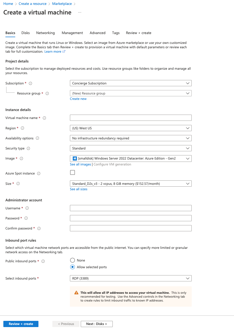 [smalldisk] Windows Server 2022 Datacenter - Gen2 from the dropdown list.