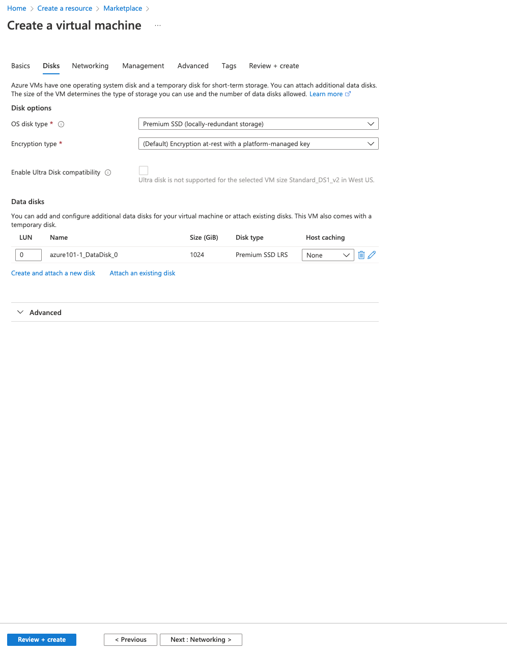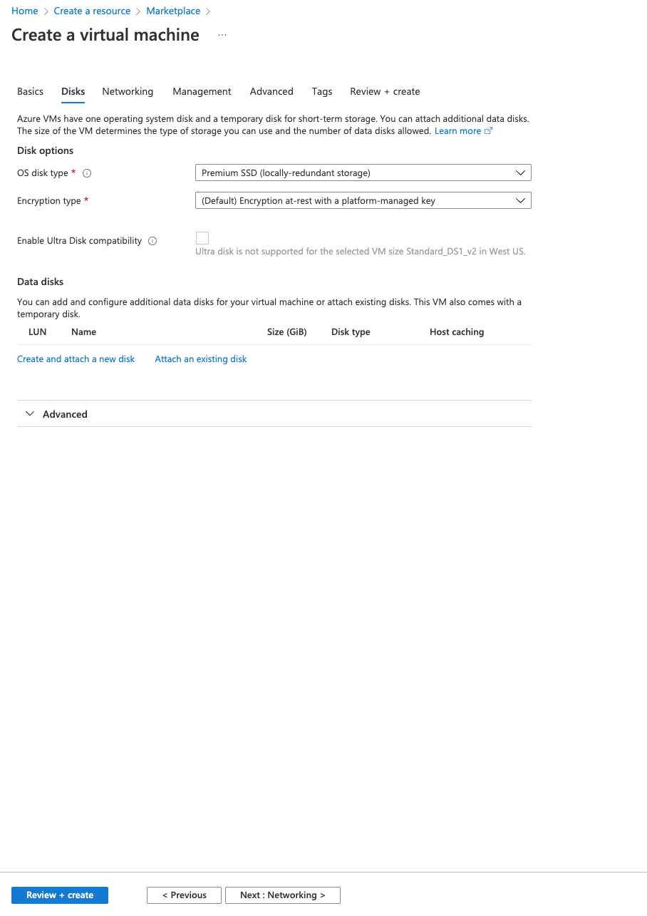 Azure presents a wizard as a series of tabs to walk you through all the configuration details for creating the VM.
