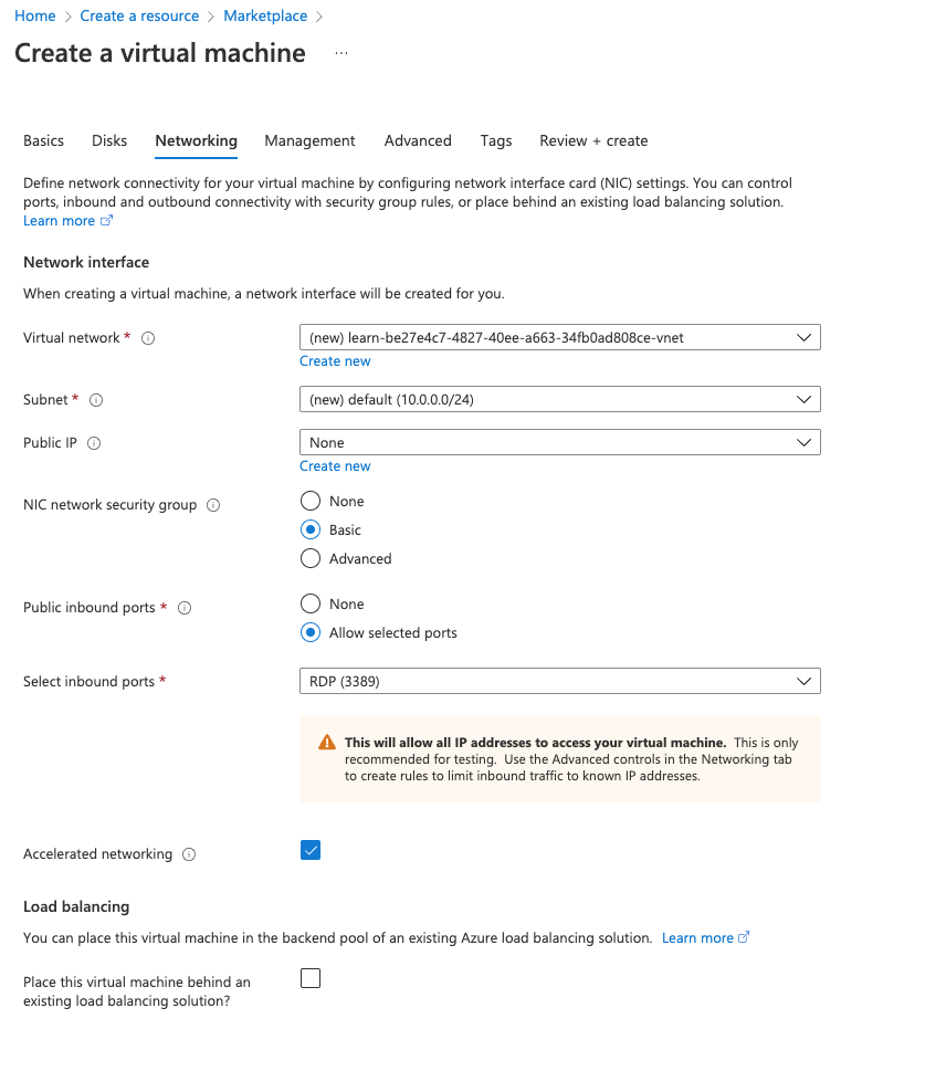 We want to be able to access the desktop for this Windows VM using RDP. (This is for lab only)